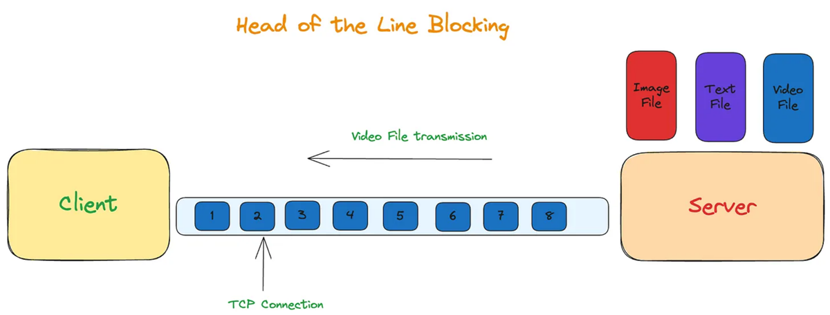 这导致了性能提升,并解决了应用层面的队头阻塞问题。然而,在TCP层面,如果发生数据包丢失,它必须等待数据包重传。