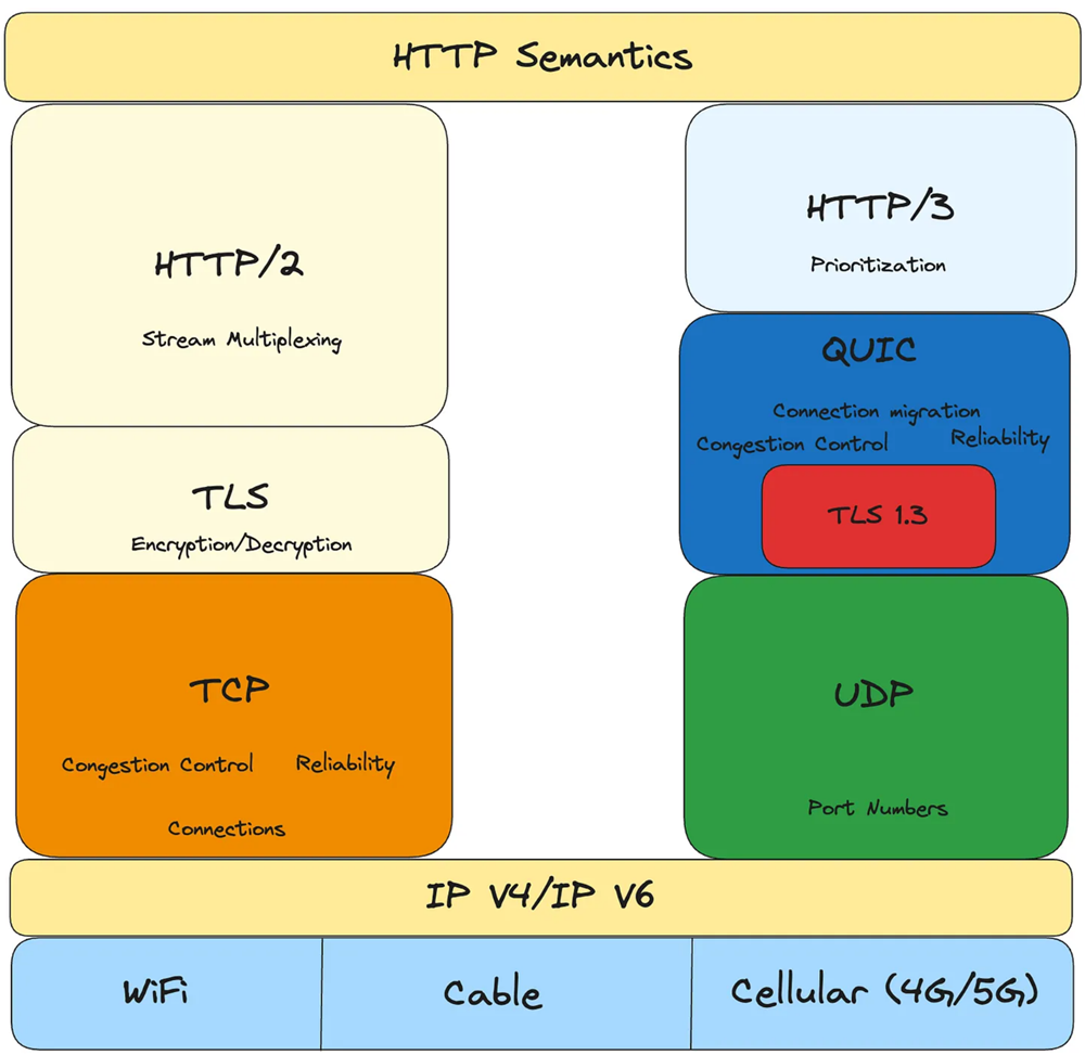 谷歌开发了改变游戏规则的协议QUIC。它利用UDP并解决了TCP的所有不足。降低延迟、多路复用、增强安全性和连接迁移是QUIC的一些显著特点。QUIC带来的创新解决了队头阻塞等问题。